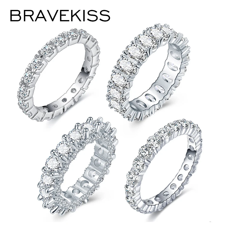 Name: BRAVKIS bandas de boda eternidad anillos con Zirconia para las mujeres CZ cristal promesa Dedo de compromiso anillo joyas de diseño Bague BUR0279