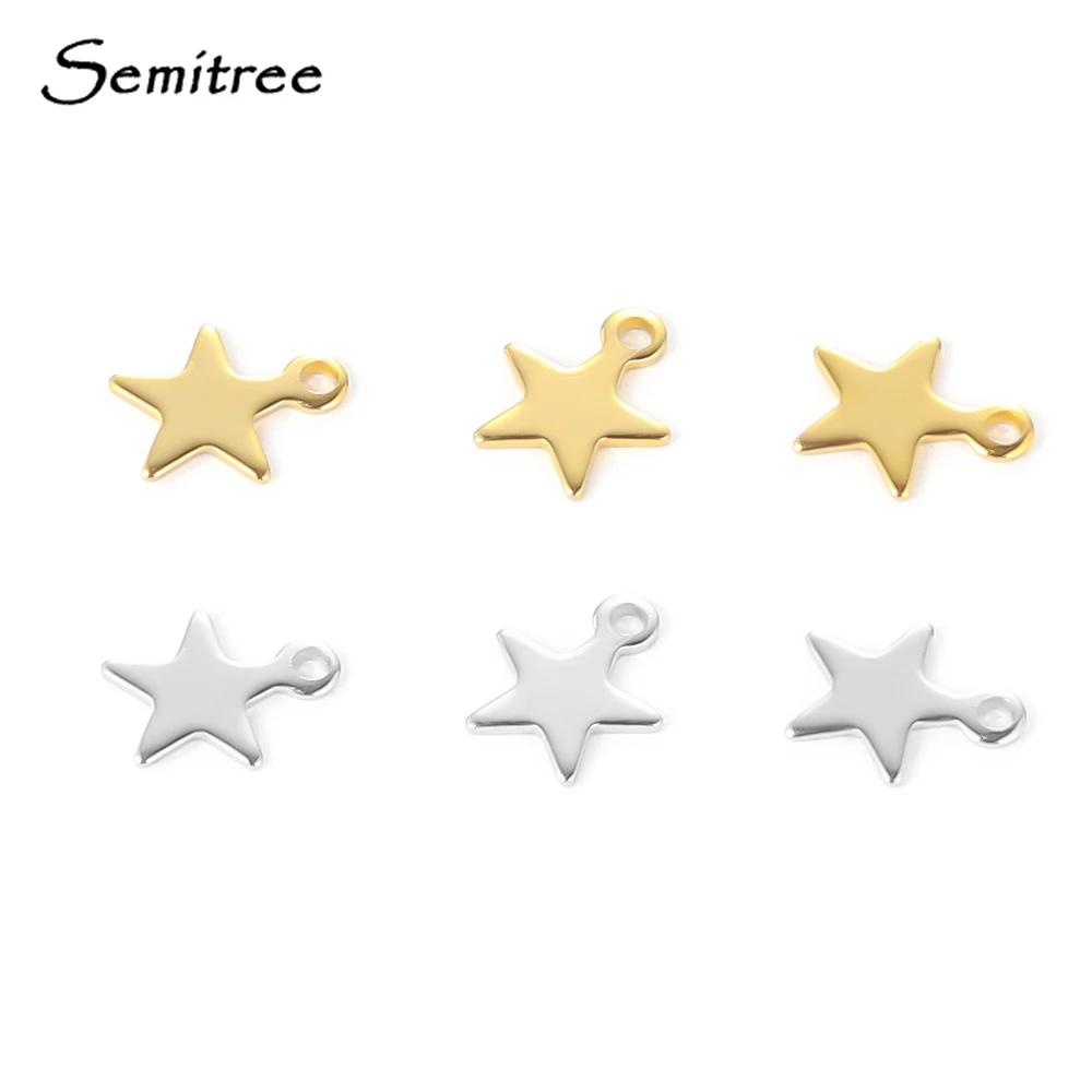 Name: Semitree-Colgante de acero inoxidable con forma de pequeña estrella, Charms planos para fabricación de joyas, collar de decoración, pulsera, extremo de cola, 20 Uds.