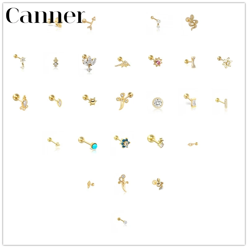 Name: Canner 1 Uds Pendientes de Plata 925 Pendientes para las mujeres Stud Pendientes geométricos serpiente CZ Pendientes de cartílago Piercing joyería W5