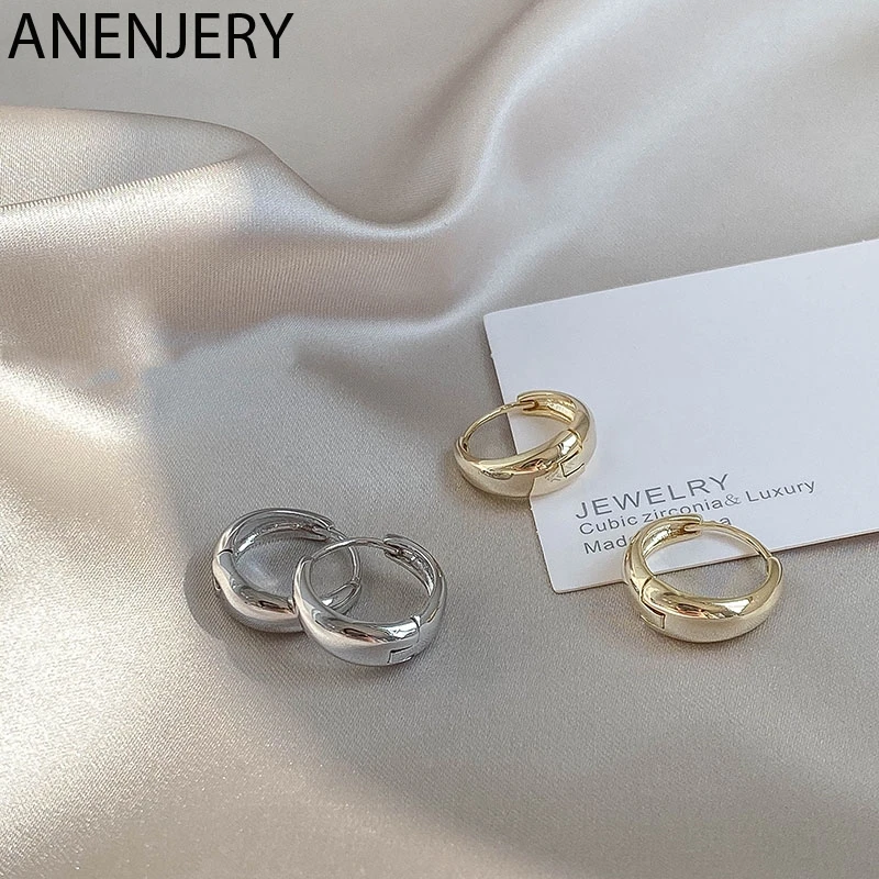 Ofertas Especiales ANENJERY-pendientes de arco circular de Plata de Ley 925, joyería Retro Simple, regalo de San Valentín para pareja, S-E1373 al por mayor wxQKMm8o9yk