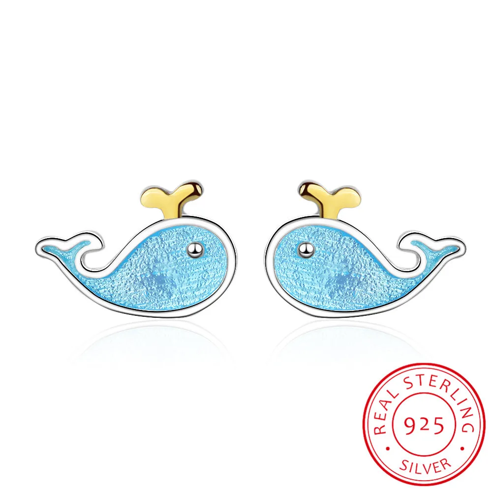 Name: Lindo pequeño azul pendientes con forma de ballena 925 Sterling marino, plateado Animal pendientes para mujer niña regalo Boucle D'oreille S-e646