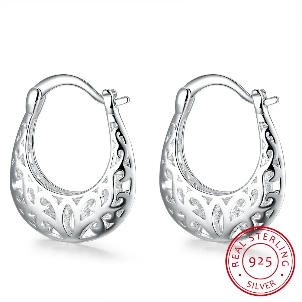 Name: Pendientes de aro de Plata de Ley 925, bolso nuevo en forma de diseño de flores, pendientes de fiesta de moda para joyería de mujer