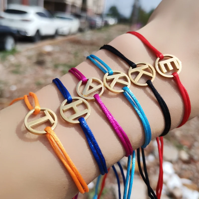 Name: Pulsera con inicial de cuerda roja para hombre y mujer, brazalete hecho a mano con letras de acero, 26 letras