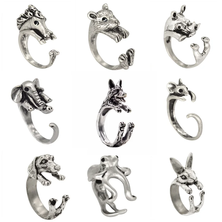Name: Kinitial antiguo mujer Animal Series Retro anillo estilo Punk dedo anillos para mujer Animal perro ratón caballo anillos de gato Bijoux