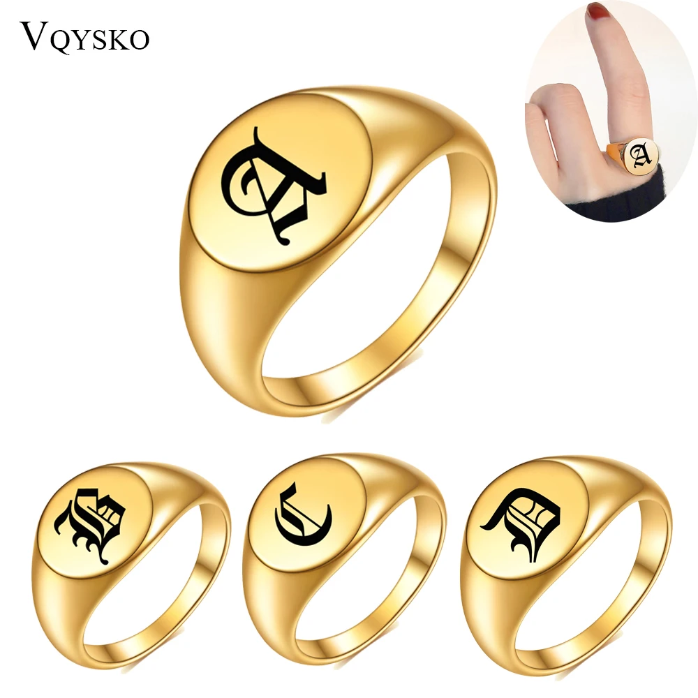 Constante que las imágenes. Gracias a VQYSKO Official Store lucro este Anillo de acero inoxidable para hombre y mujer, joya de sello con inicial de A-Z, Color dorado, con letras, joyería gruesa para dedo Punk